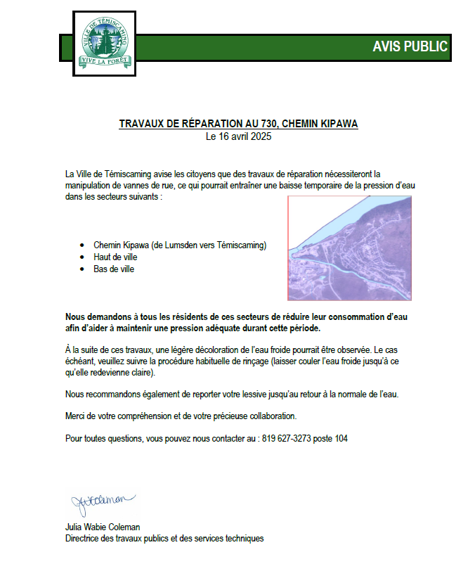 Cette alerte est en lien avec la levée d'alerte suivante : TRAVAUX TERMINÉS - RETOUR À LA NORMALE, publié le mercredi 16 avril 2025 à 13 h 31.