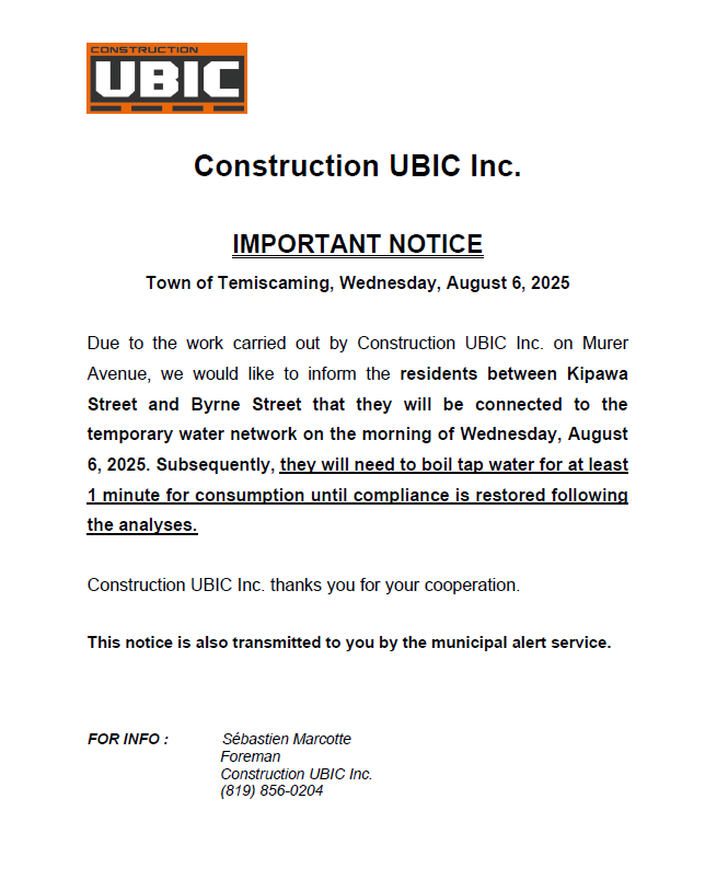 This alert is related to the following alert: Lifting of Preventive Boil Water Advisory. - Murer Avenue, published on mercredi 3 septembre 2025 to 13:33.